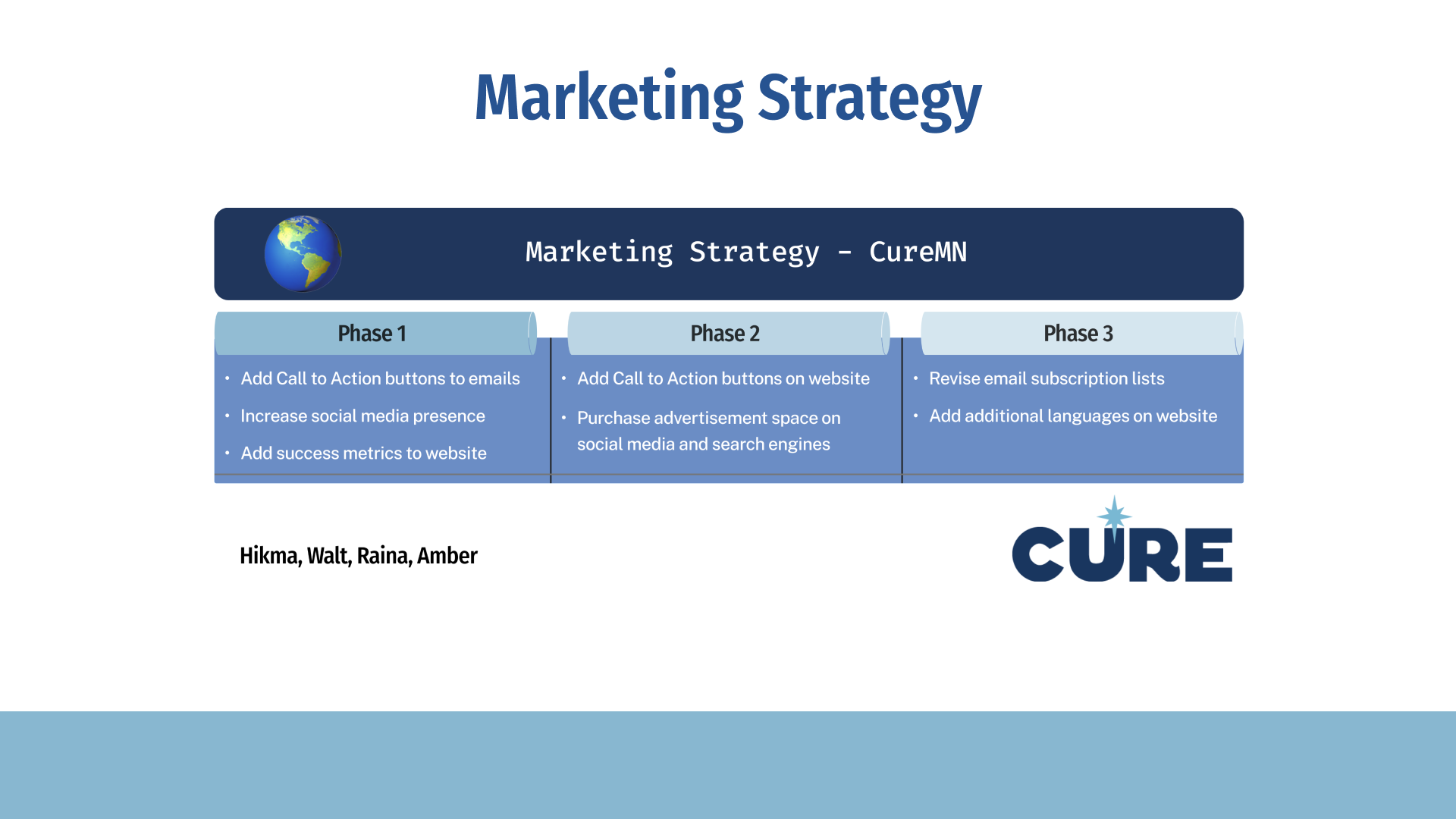 Enhance CURE's communication strategy to effectively convey their mission and activities.